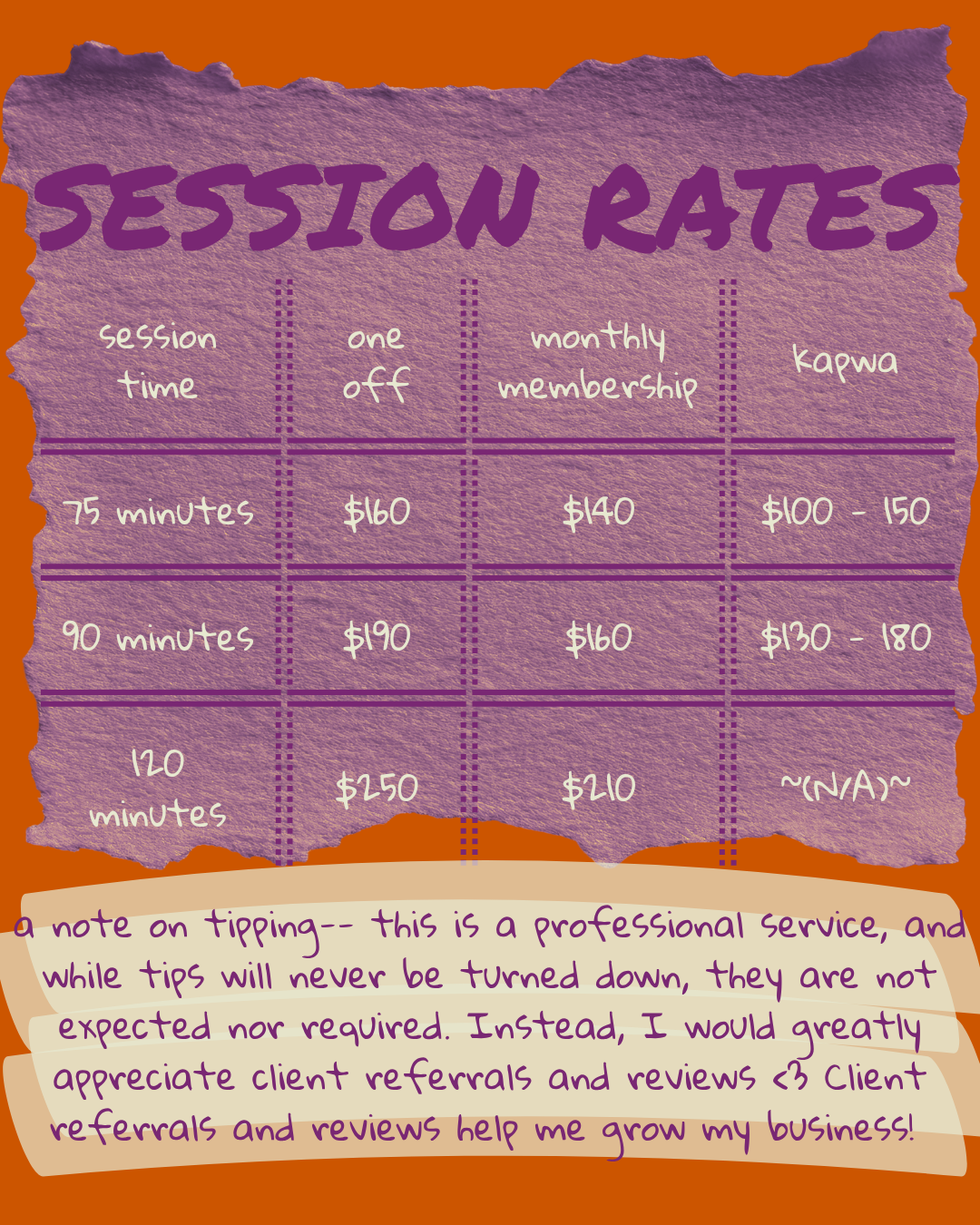 services BODYWORK75, 90, 120 MINUTE SESSIONS AVAILABLE DETERMINING SESSION LENGTH IS DEPENDENT UPON YOUR GOALS AND WHAT IS POSSIBLE WITHIN THAT TIME. IN OUR CONSULTATION CALL, WE’LL DISCUSS OUR OPTIONS.